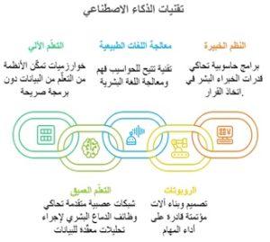 الذكاء الاصطناعي هو تكنولوجيا تمكّن الآلات من محاكاة الذكاء البشري، من خلال أداء مهام مثل التعلُّم، الاستنتاج المنطقي، حل المشكلات، وفهم اللغة. وعلى الرغم من أن الذكاء الاصطناعي لا يستطيع محاكاة الإدراك البشري بشكل كامل، فإنه يتميّز بقدرته العالية على تحليل كميات ضخمة من البيانات، وأتمتة العمليات، ودعم عملية اتخاذ القرار. وتشمل التقنيات الرئيسية للذكاء الاصطناعي: التعلّم الآلي، والتعلّم العميق، ومعالجة اللغة الطبيعية، والروبوتات، والنظم الخبيرة. [i] [ii]