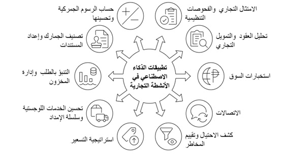 من خلال هذه التطبيقات، تساعد قدرة الذكاء الاصطناعي على تحليل بيانات ضخمة واستخلاص توقعات دقيقة في تقليل العوائق التجارية وتعزيز التنافسية. [vii]